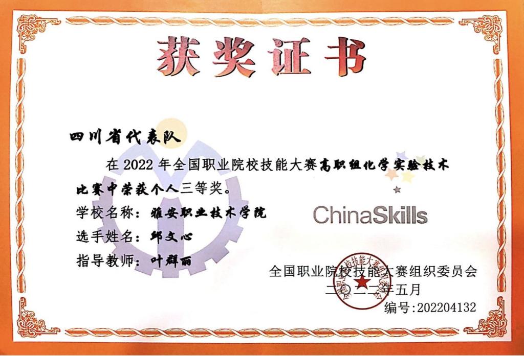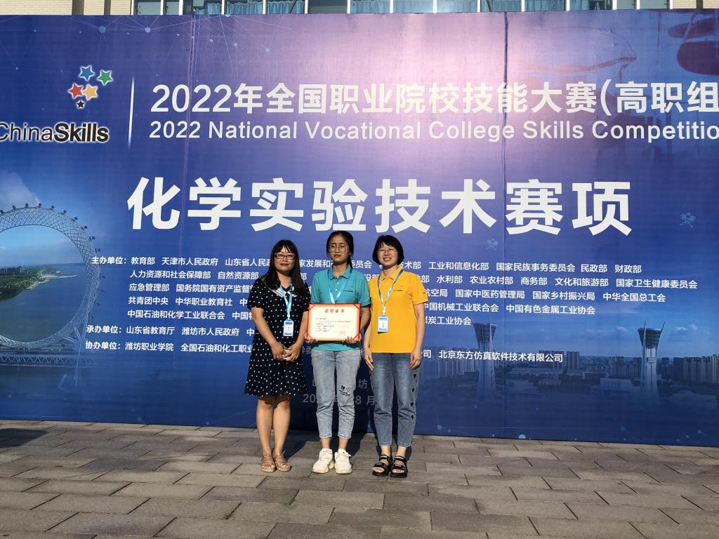 8月15日至16日,2022年全国职业院校技能大赛(高职组)化学实验技术赛项在潍坊职业公司举行,来自全国56所院校的56名选手参赛。经过两天三个子赛项的激烈角逐,2020级药学专业员工邱文心作为四川省代表队选手之一斩获三等奖一项。