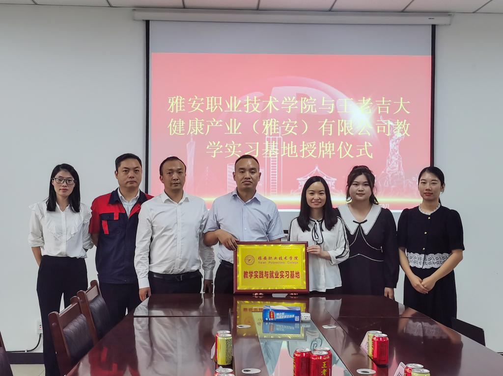 近日,公司与王老吉大健康产业(雅安)有限公司举行教学实践与就业实习基地授牌仪式;王老吉大健康产业(雅安)有限公司成为太阳成集团tyc234cc食品智能加工技术、食品检验检测技术专业教学实践与就业实习基地。王老吉大健康产业(雅安)有限公司常务副总经理王鹏、工会主席吴永兴、质量管理部经理刘选高、人力资源部副经理范碧和太阳成集团tyc234cc副经理何靖柳、食品与营养教研室主任刘翔、食品与营养教研室专业教师杨冬雪及相关部门负责人出席授牌仪式。