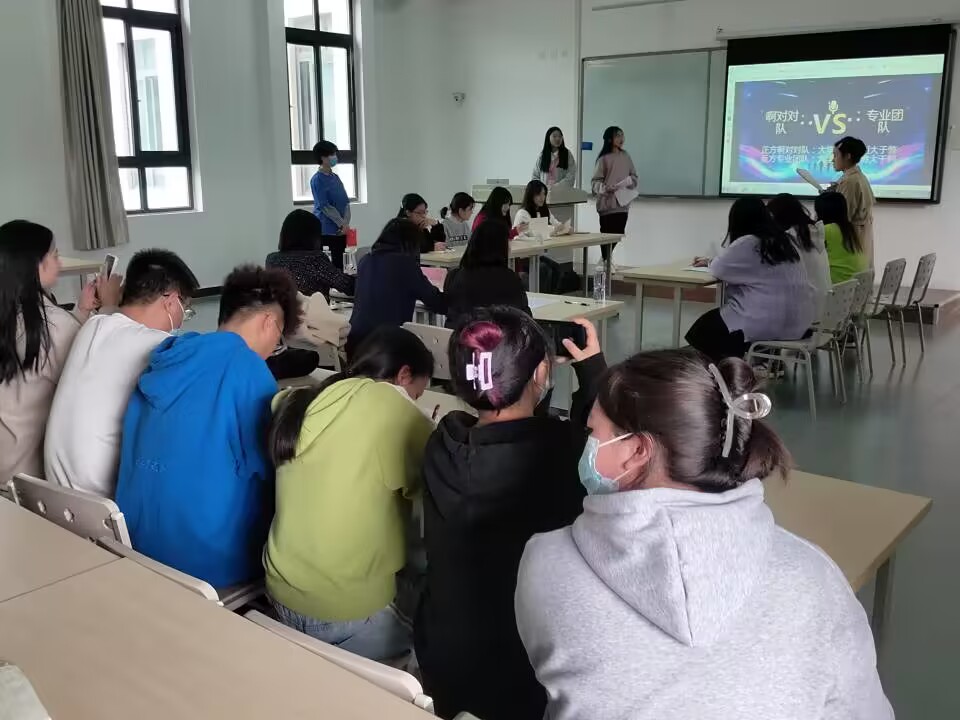 本次辩论赛设定了4个主题,分别为:“网络使人更亲近还是更疏远”、“网络对老员工的影响弊大于利还是利大于弊”、“爱情在于天长地久还是曾经拥有”、“老员工恋爱是利大于弊还是弊大于利”。32名同学以4人为一组分为8个队伍,自主选题,准备时间半小时,首先对阵的队伍是“啊对对队”与“专业团队”,辩论主题为“老员工恋爱是利大于弊还是弊大于利”,参赛选手们围绕论点展开激烈的争论答辩,引经据典,在场上斗智斗勇,道古论今!尤其是自由辩论环节,甚是激烈,大有诸葛舌战群儒之势。他们的精彩辩论同时也点燃了其他队伍的斗志!整个辩论赛在同学们阵阵掌声中圆满结束,最后由“少年先疯队”、“同路人队”、“你说对就队”和“啊对对队” 共同获得本次辩论赛的优秀奖。