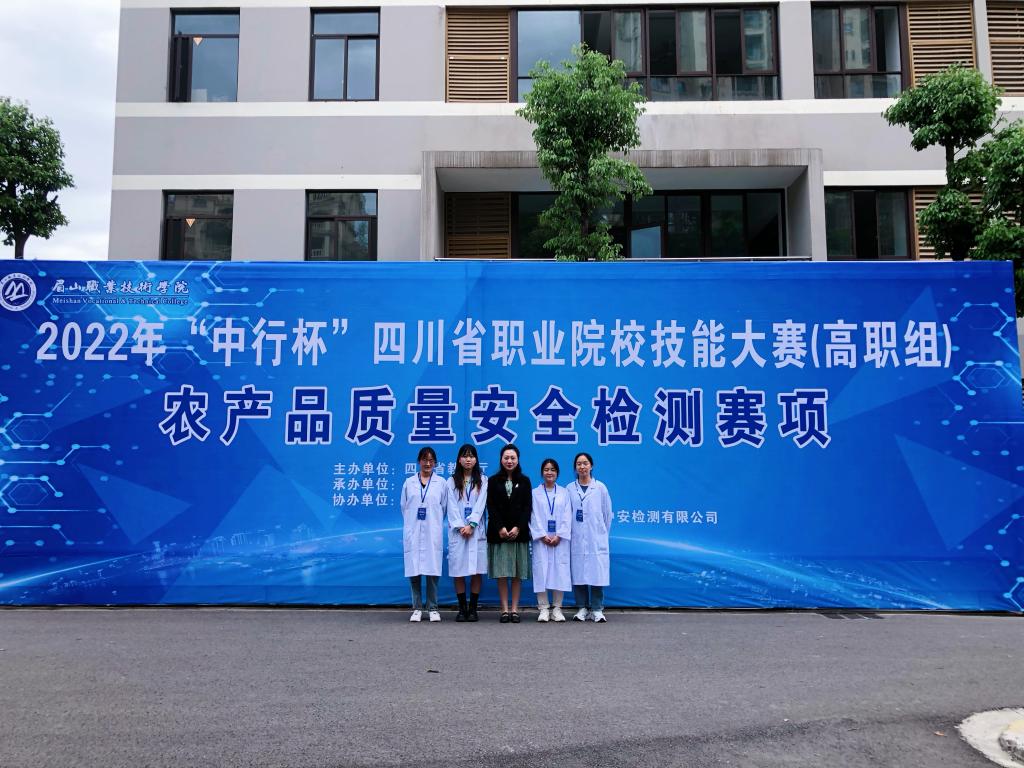 4月23-24日,在由四川省教育厅主办的2022年“中行杯”四川省职业院校技能大赛(高职组)农产品质量安全检测赛项中,公司张恒、何丹、李杰3名老师指导杨海兰、刘梦、卢柳欣、刘薇4名同学组成2支代表队,与来自全省11所高职院校22支代表队同台竞技,经过2天的激烈角逐,杨海兰、刘梦获二等奖,卢柳欣、刘薇获三等奖。同时,这也是公司学子连续两年在该项比赛中获奖。