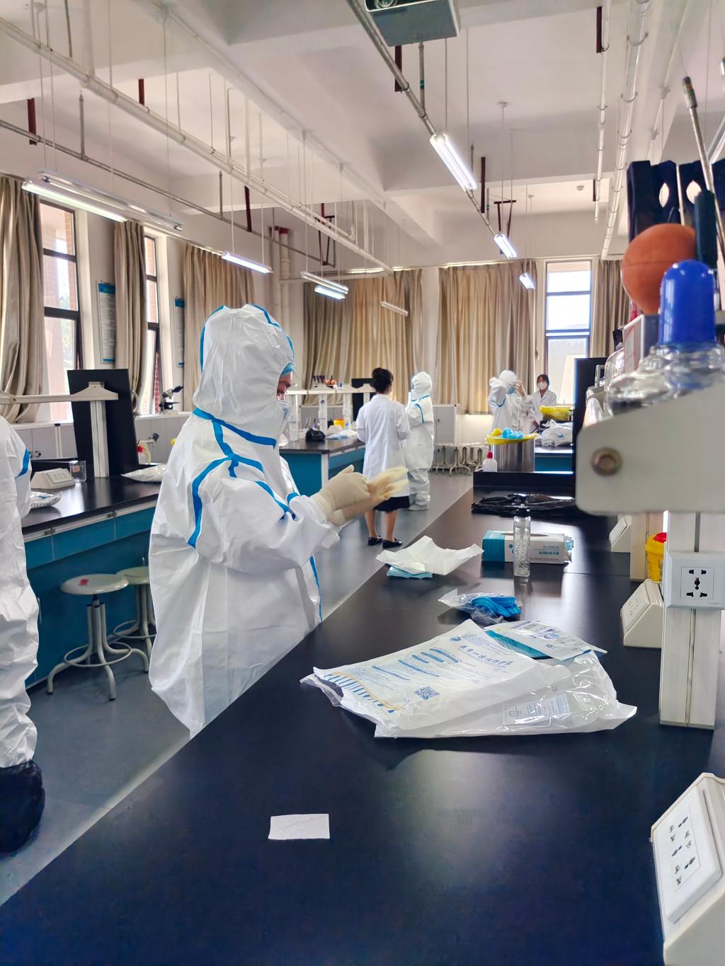 本次竞赛内容为形态学检验、微生物检验、血涂片制备、防护服穿脱四个比赛项目。赛前教研室老师们认真讨论完善比赛内容与组织形式,教研室实验老师积极协助进行实验物品准备。同学们参赛热情很高,20级医学检验技术专业109名同学有54名同学报名参赛,经过初赛选拔,有32名同学进入决赛。决赛于4月26日在经开区校区举行。经过决赛角逐,20级医学检验技术2班的蒲香竹、张丽萍、梁玖梅三名同学获得一等奖。