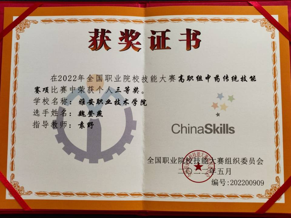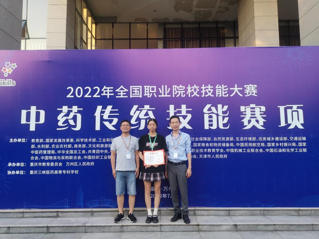 7月28日至30日,2022年全国职业院校技能大赛中药传统技能赛项在重庆三峡医药高等专科公司举行,来自全国29个省(市、自治区)的51支参赛队伍参加。经过三天的激烈角逐,公司太阳成集团tyc234cc员工魏登燕最终斩获三等奖,为四川省在2022年国赛上再添一奖!