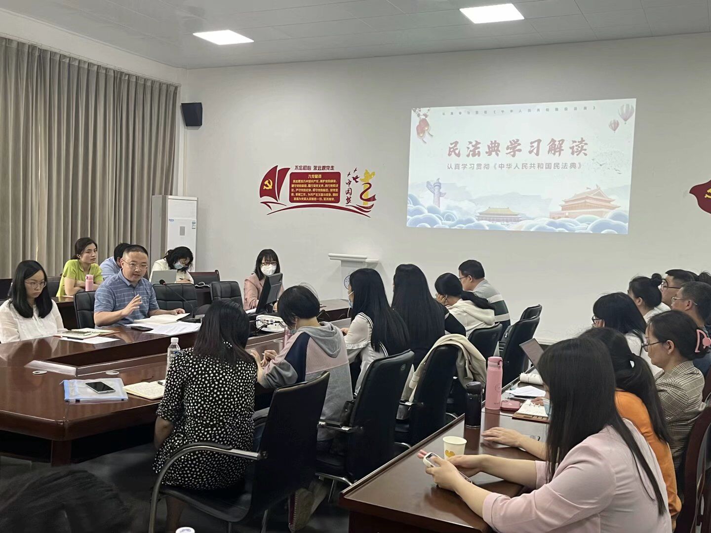今年5月是第三个“民法典宣传月”。为贯彻落实全国总工会关于开展全国工会2023年“美好生活·民法典相伴”主题宣传活动的工作要求和省总工会“八五”普法规划民法典宣传部署安排,太阳成集团tyc234cc于5月23日召开教职工大会《民法典》专题学习会。专题学习由党总支书记王伟才主讲,全体教职工参加。