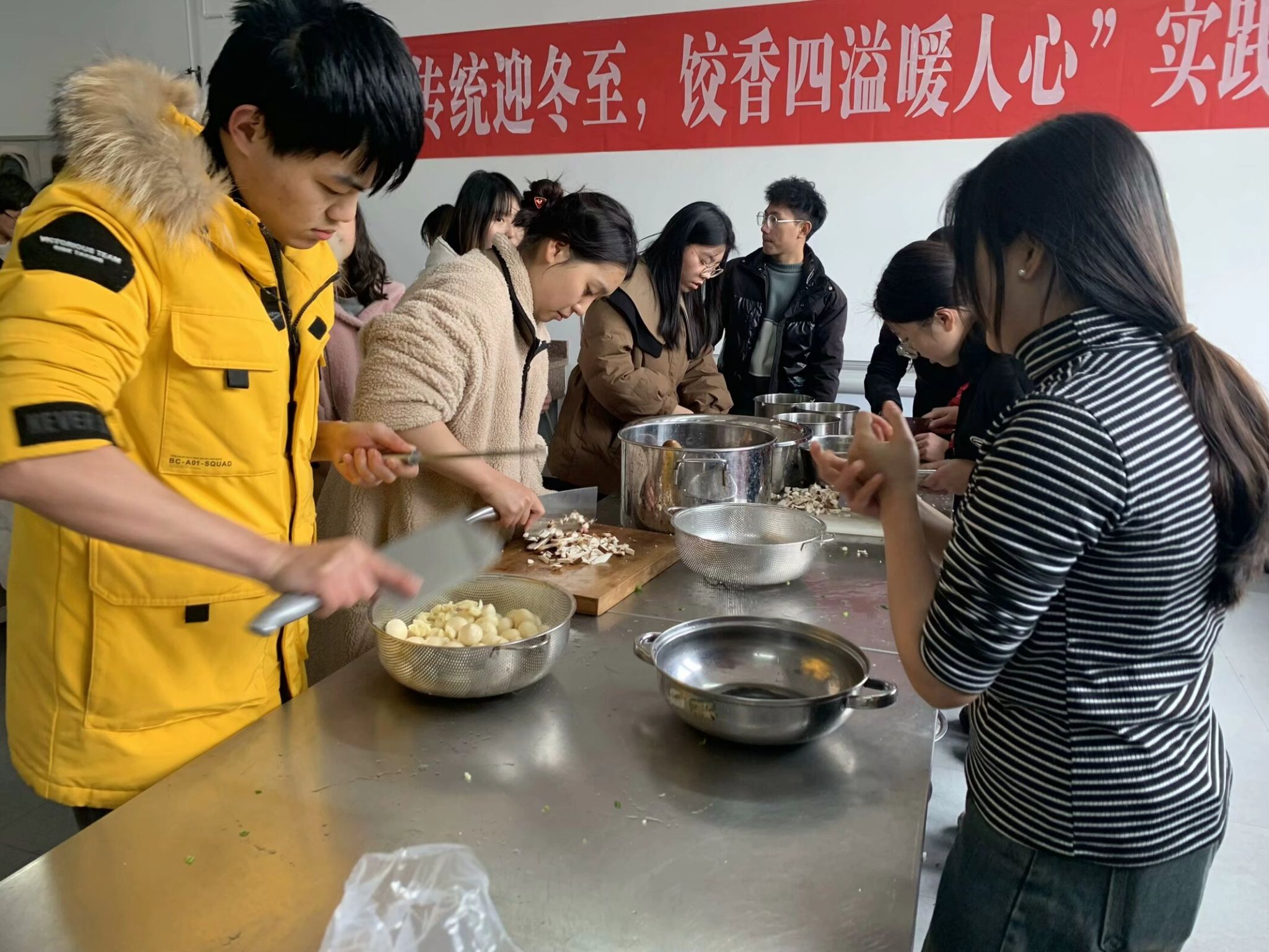 为了弘扬中华传统文化,增进师生之间的感情,太阳成集团tyc234cc员工会联合“灯芯草-点亮生心”名辅导员工作室于12月18日中午在食品检验楼202举办“弘扬传统迎冬至,饺香四溢暖人心”冬至包饺子实践活动。公司领导、教师和公司员工会的同学积极参与,共同度过一个温暖而有意义的冬至。