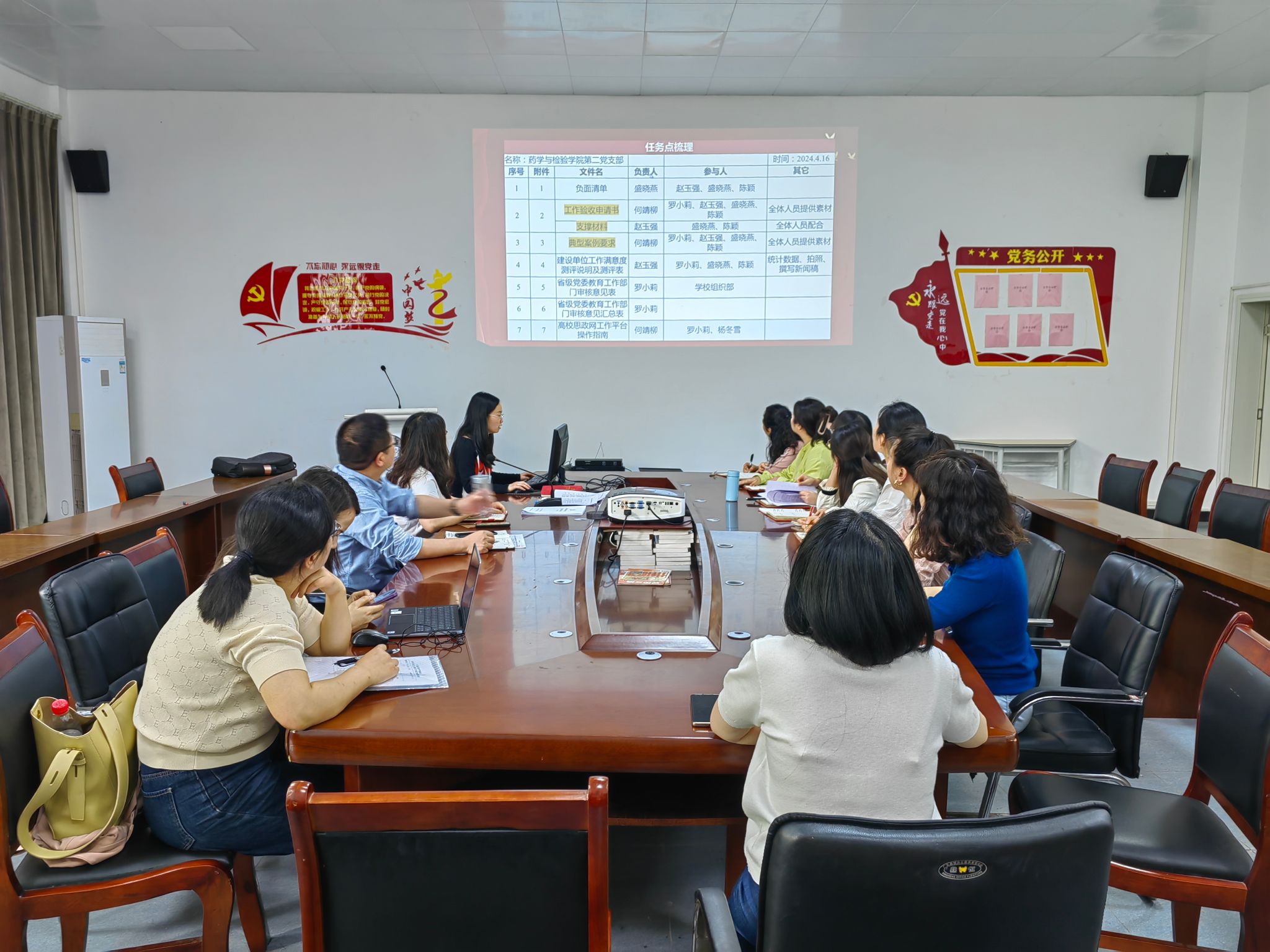支部书记何靖柳对样板支部建设的终期汇报任务点进行了梳理,细分工作任务落实到人上,需要全体党员教师积极认真配合验收工作,希望支部能圆满完成全国样板支部的终期验收工作。