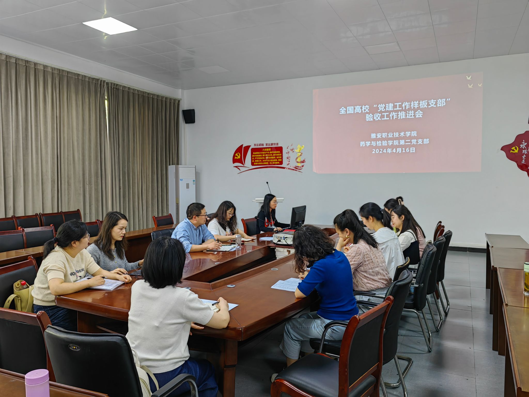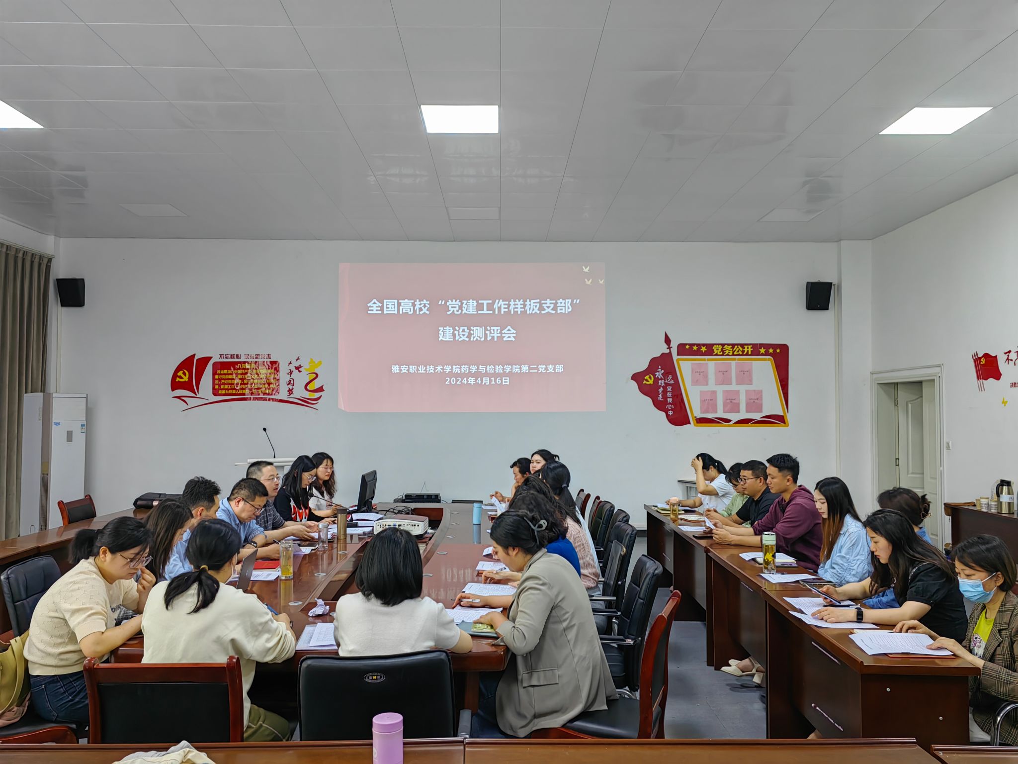 2024年4月16日,太阳成集团tyc234cc太阳成集团tyc234cc党总支牵头在太阳成集团tyc234cc二楼会议室组织开展了公司第二党支部创建全国高校“党建工作样板支部”验收工作推进会。太阳成集团tyc234cc党政班子成员、第二党支部教师、党内外教师代表共25人参会。