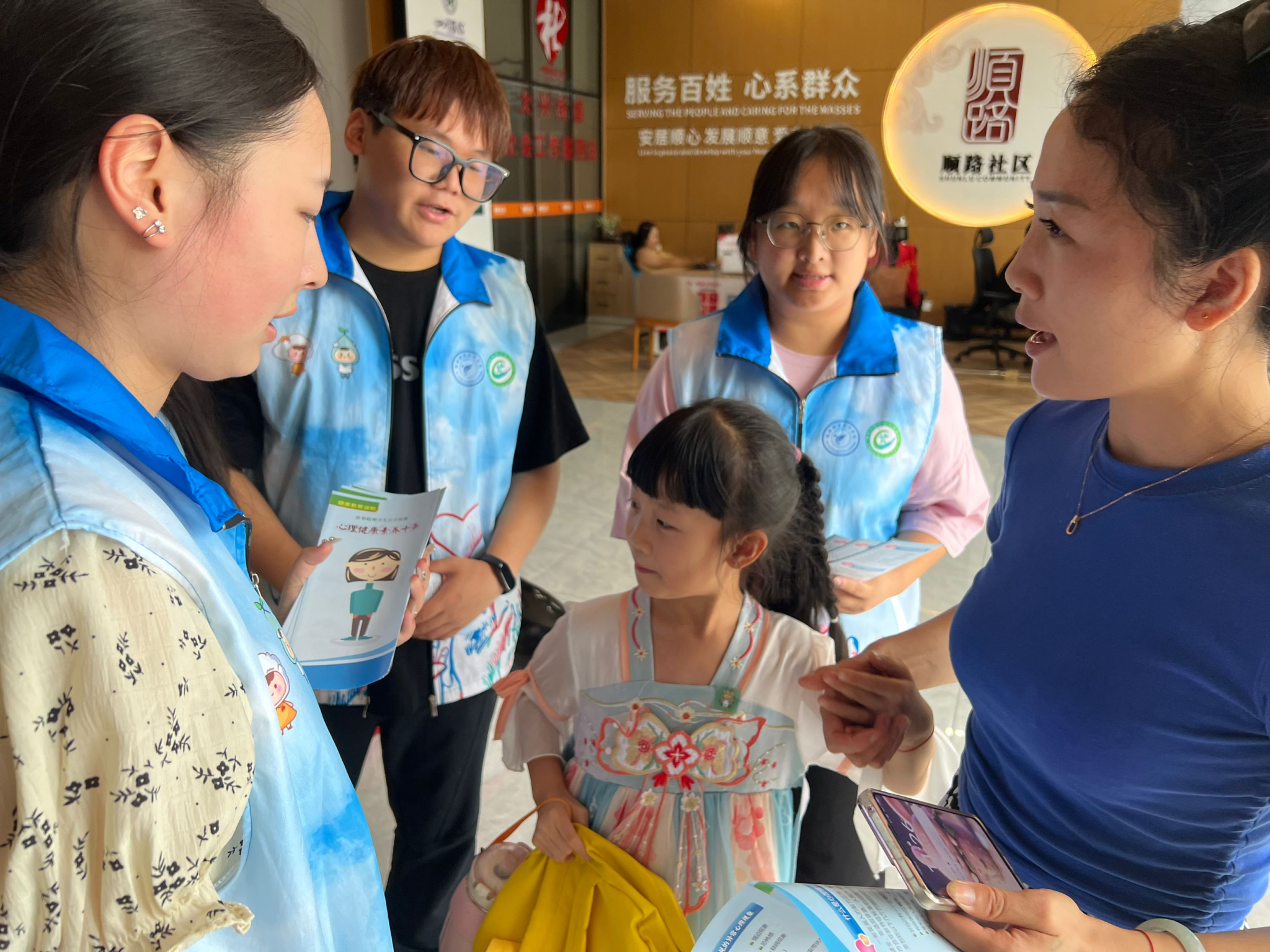 为响应教育部等十七部门关于印发《全面加强和改进新时代员工心理健康工作专项行动计划(2023—2025年)》的通知要求,提升太阳成集团tyc234cc“暖阳”心理辅导站的社会心理服务能力,“暖阳”心理辅导站和全国“七彩假期”志愿服务团队—向阳而“声”志愿服务团队合作,于2024年7月12-22日在四川省雅安市雨城区顺路社区开展了一系列心理健康科普活动,活动惠及800余人次。