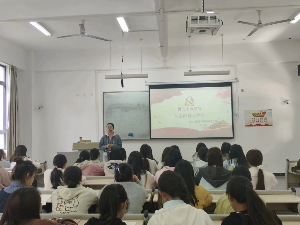 本着坚持早播种、早选苗、早培养,将入党动机端正且真正优秀的员工吸纳入党的原则,为帮助有入党意愿的大一新生对入党的基本流程有初步的正确认识,并树立正确的入党动机,公司第三党支部员工建党工作站于2024年10月10日在经开区1106教室组织开展了员工素质拓展讲座《党的组织发展——入党的基本程序》,讲座由公司第三党支部书记、员工党建工作站站长芦珂老师主讲。