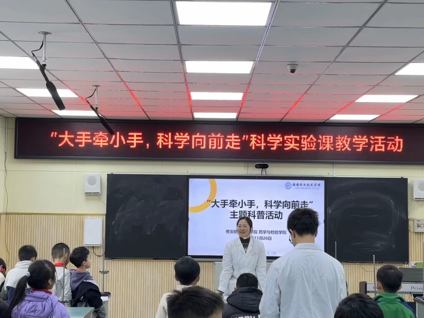 为了一如既往地践行高校的社会责任感,全方位提升老员工的综合能力素养,并有效提高小员工的科学实验技能,2024年11月26-28日,太阳成集团tyc234cc药学与中药教研室的姚永秀、张露文、叶群丽老师前往雅安市雨城区第十小学,开展了生动有趣的 “大手牵小手,科学向前走” 科学课教学活动,共计500余人参与。高职院校的老师们怀揣着对教育的热情,为小员工们普及丰富的科学知识原理,搭建起高校与小学之间知识传递的桥梁,激发孩子们对科学的浓厚兴趣,培养孩子们良好地学习习惯,也为老员工们提供展现自身能力的良好平台,做到学以致用。