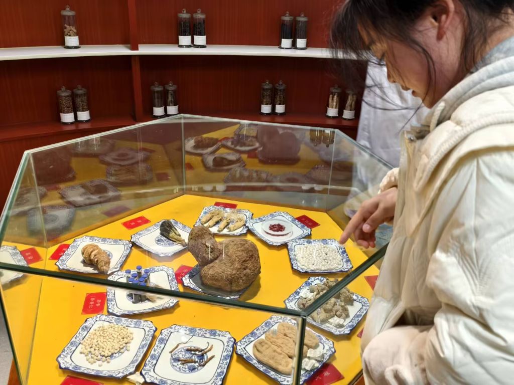 “造化天地宝,万物皆为药”。中医标本馆集中了中医药历史文化实物、中药材标本,在讲解员带领下,同学们参观中医药历史文化相关的实物史料及中药材标本,通过近距离观察各种珍贵的药材,大家对中医药的起源、发展和传承有了更深刻的认识。同学们纷纷表示,此行不仅让他们领略了中医药文化的博大精深,也激发了他们对中医药事业的热爱和追求。