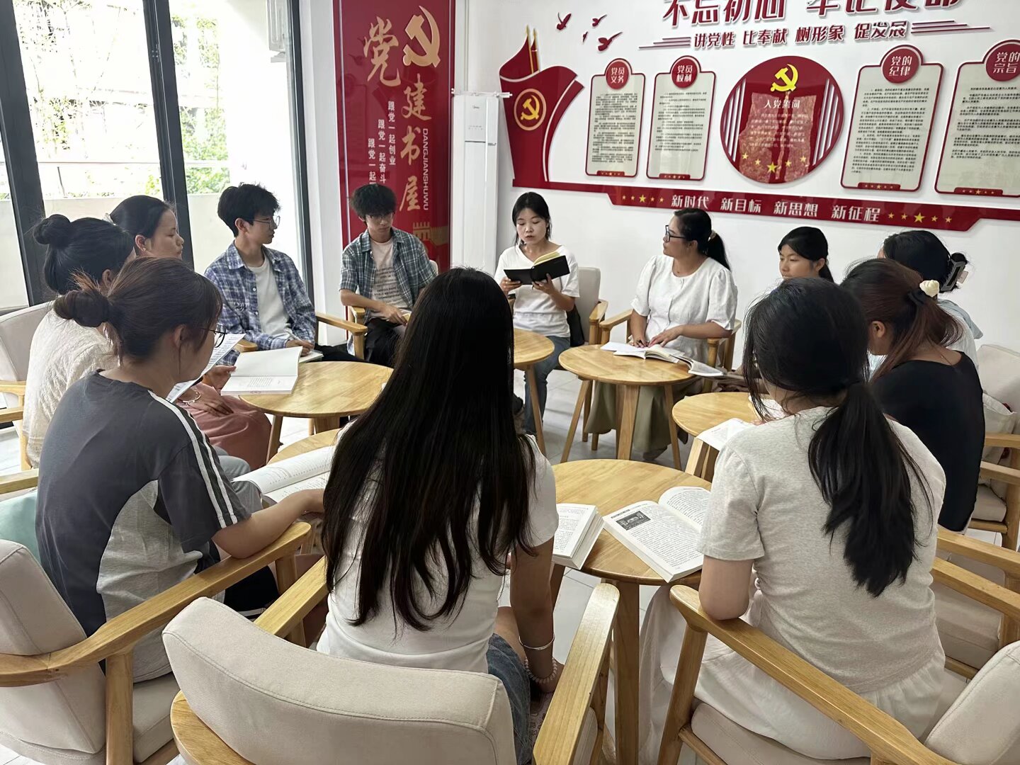 为进一步加强入党积极分子和发展对象的思想政治教育,深化对党的理论知识、光辉历史及革命精神的理解,坚定理想信念,端正入党动机,帮助其扣好入党“第一粒扣子”。6月19日13:00,公司第三党支部组织发展对象和入党积极分子在员工党建工作站开展了“学思践悟红色书香”读书分享会,分享会由公司第三党支部书记、员工党建工作站站长陈静老师主持。