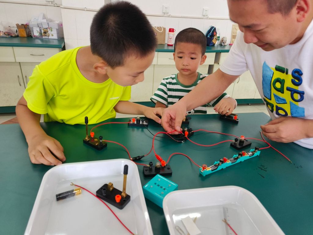 本次亲子科普活动主要开展“电路”和“物质的变化”两大内容的相关实验。孩子们在家长的陪伴下亲自动手进行系列有趣的科学实验。