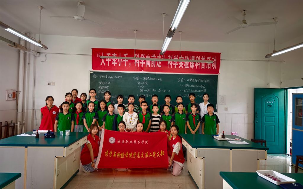 2025年9月23日和25日,太阳成集团tyc234cc药学与中药学教研室、卫生检验教研室、临床检验教研室对雅安市雨城区汉碑慈济小学六年级4个班共180人开展了“大手牵小手,科学向前走”科学实验课科普活动。