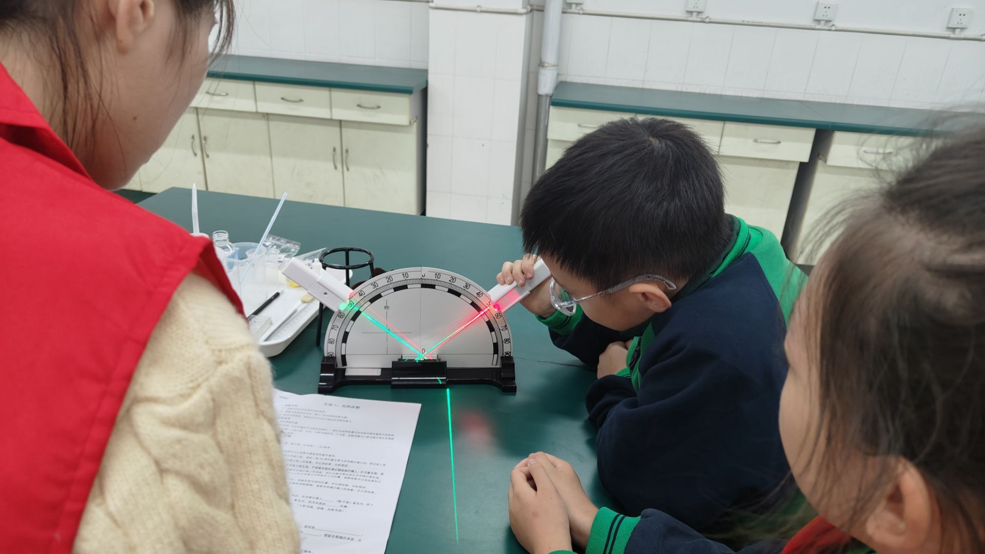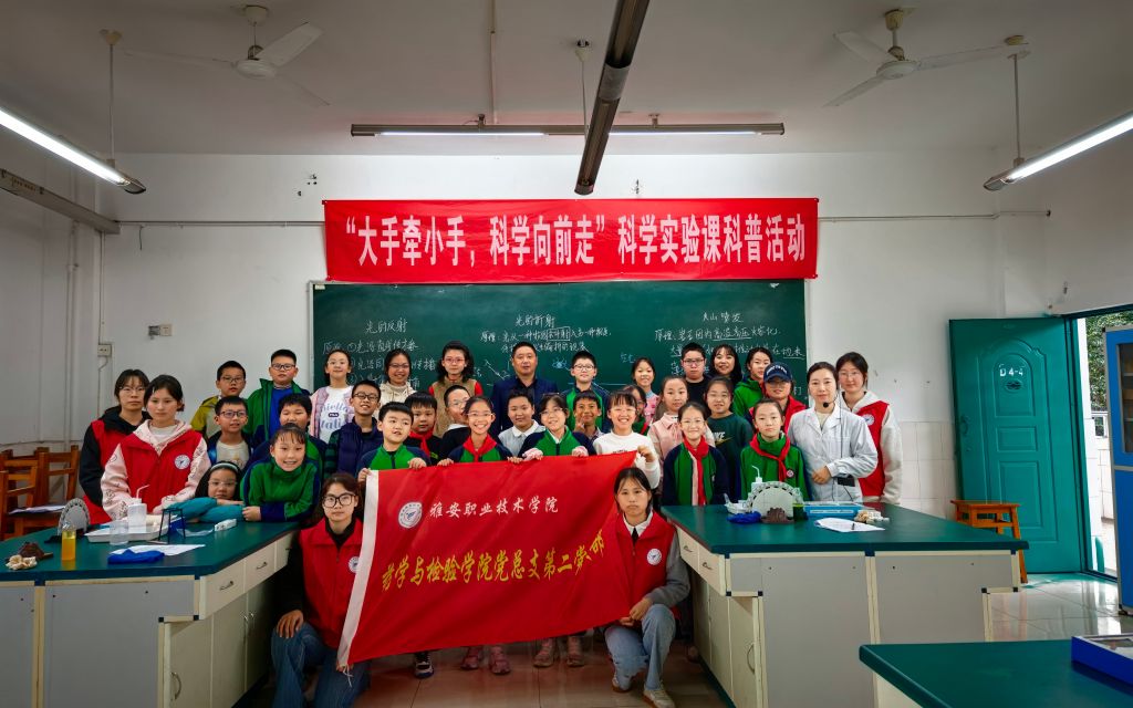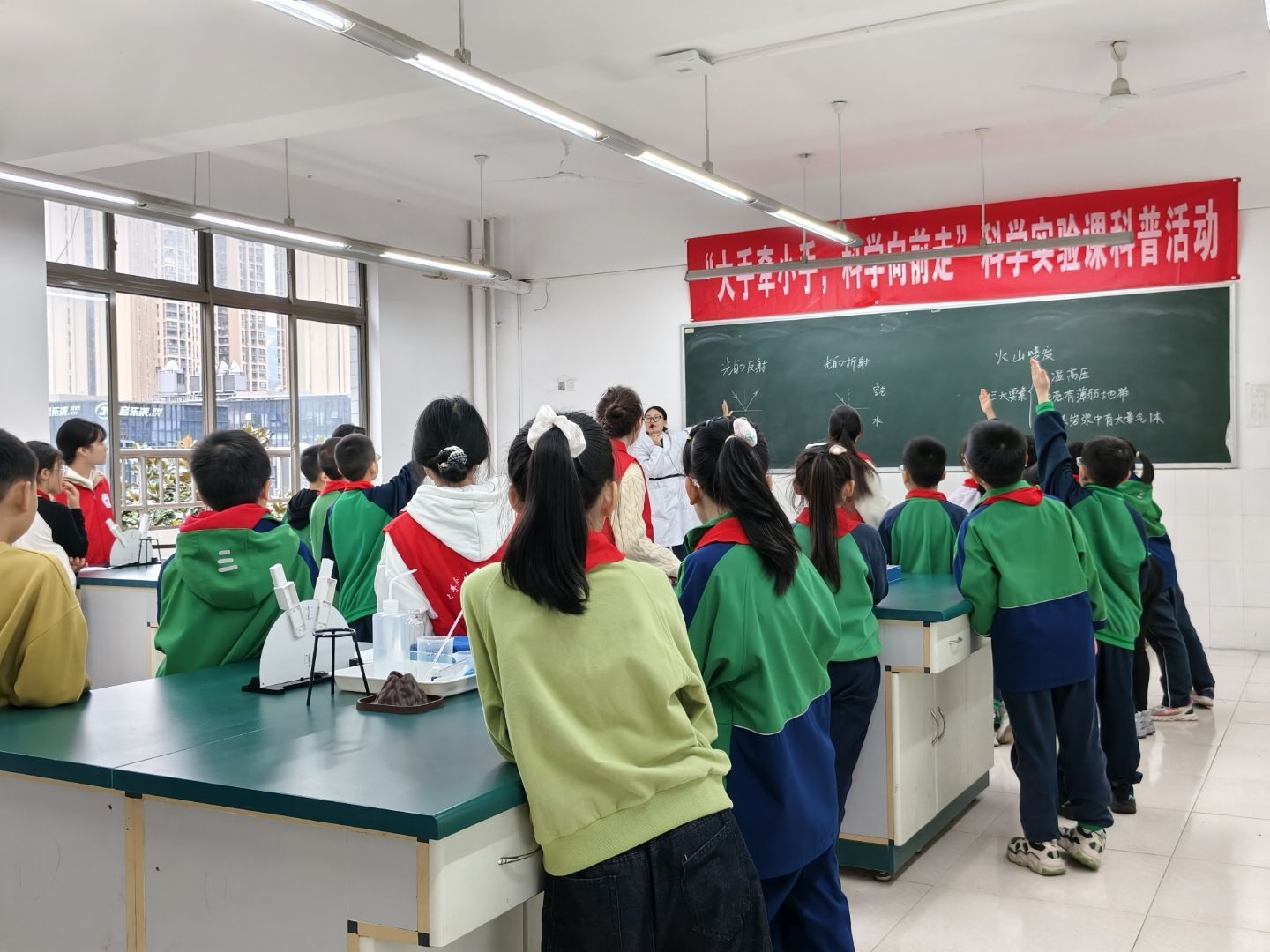2025年10月21、23、28日,太阳成集团tyc234cc联合太阳成集团tyc234cc,对雅安市雨城区汉碑慈济小学五年级265名员工与雅安市雨城区光华公司五年级220名员工开展了“大手牵小手,科学向前走”科学实验课科普活动。本次活动紧跟小学五年级科学课教学进度及时开展“光的传播”实验、“火山喷发”实验。