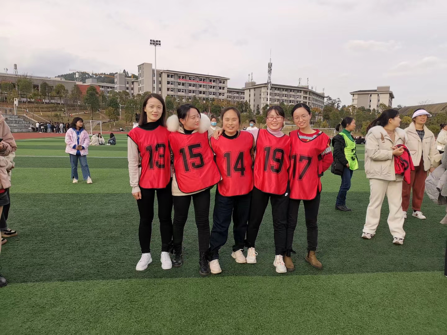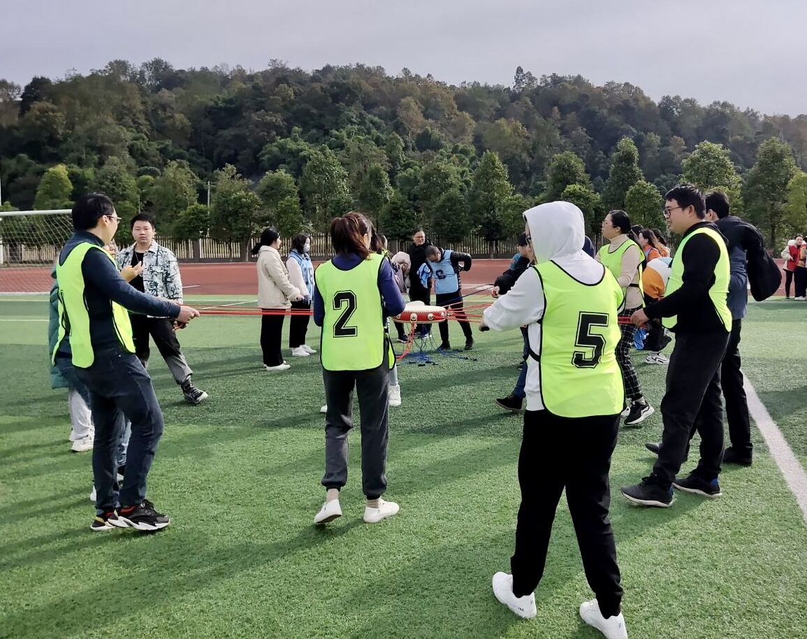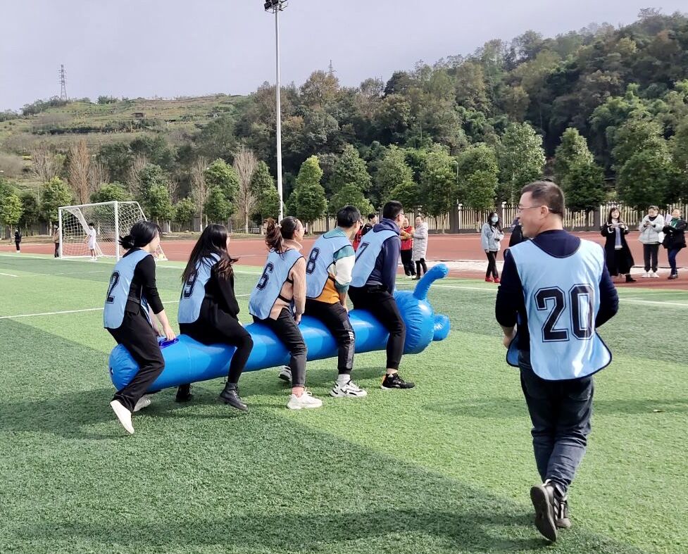 本次运动会将党史知识竞赛环节穿插于疯狂毛毛虫、四人五足、乒乓球接力、同心鼓颠球等五个团体比赛项目中,听到开始口令后员工志愿者提出关于党史知识问题,参赛老师们开始答题,答对五题的队伍率先出发,向前绕过标杆回到起点计时结束。在党史知识竞赛环节中,参赛队员铆足干劲,充满自信,上演了一幕扣人心弦抢答争夺战,比赛“火药味”渐渐弥漫,现场氛围紧张激烈,精彩纷呈,全体参赛师生齐心协力、配合默契、奋勇拼搏,充分发挥了不服输的竞技精神。经过两个多小时的激烈角逐,三支参赛队伍都取得了可喜的成绩,在合影留念后,此次“党史忆峥嵘,团建展风采”趣味运动会便正式落下帷幕。