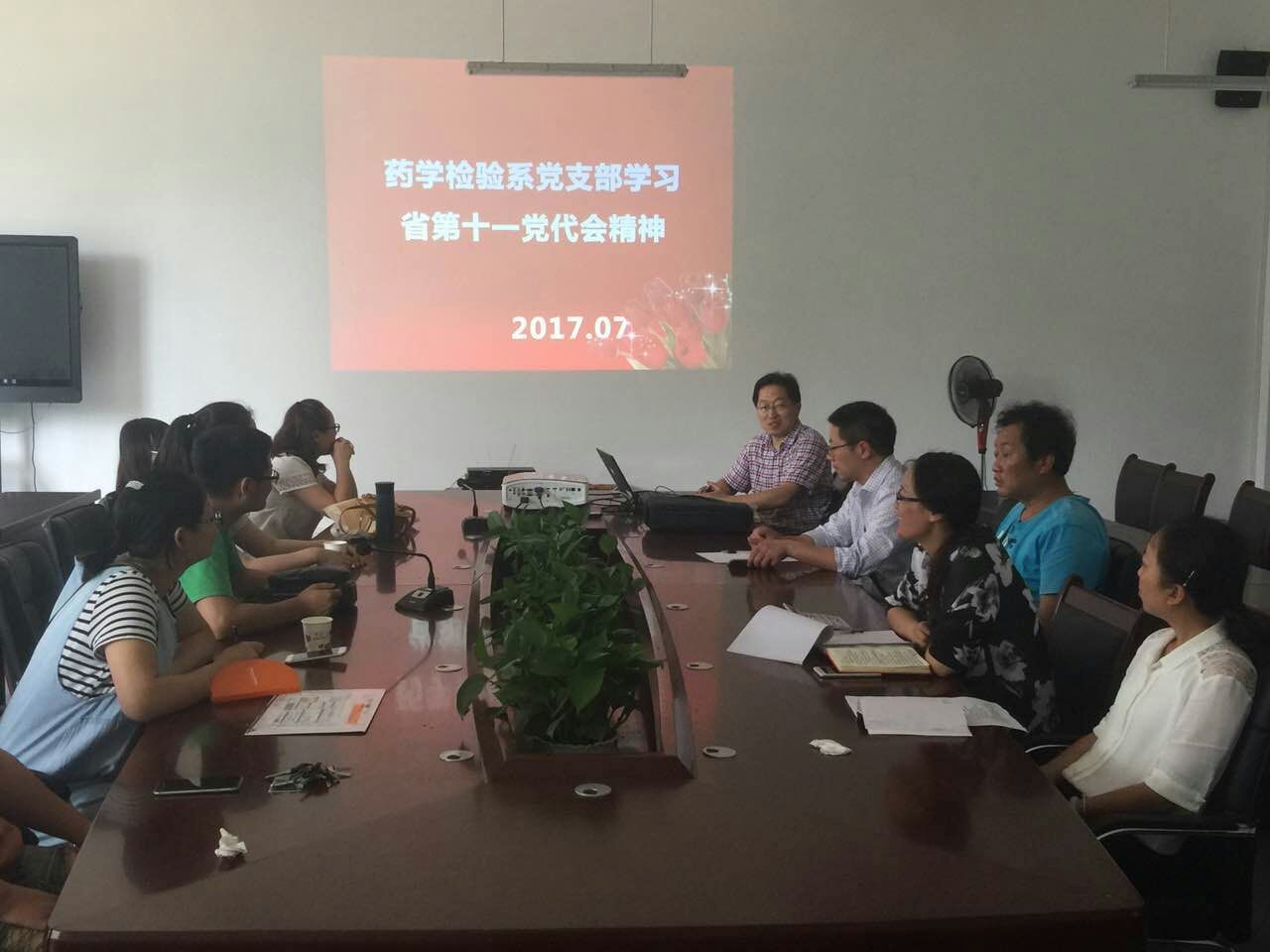 为了学习贯彻省第十一次党代会精神,丰富党员同志的组织生活,2017年7月6日,药检系党支部在经开区校区GMP车间205会议室开展了“学习省第十一次党代会精神”讨论活动。党支部书记杨泽刚、副主任李成忠和药检系部分党员职工参加了此次讨论会。会议由药检系党支部书记杨泽刚主持。