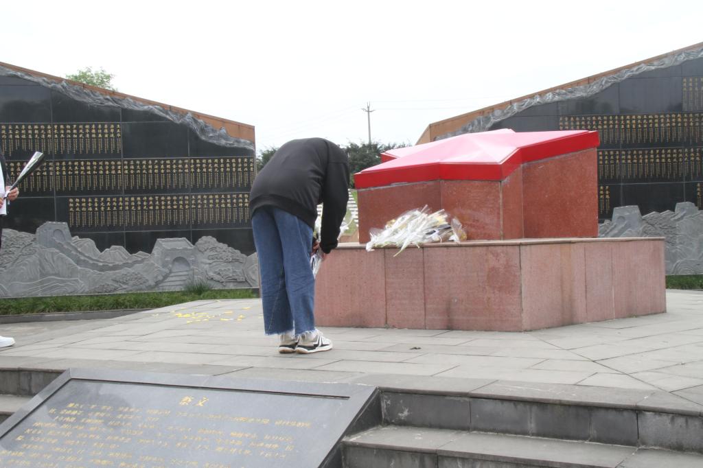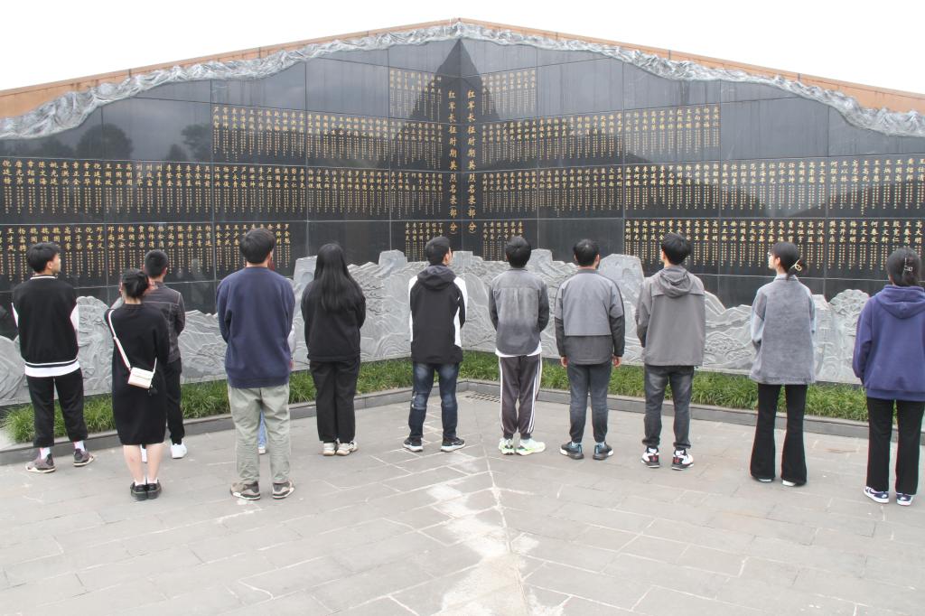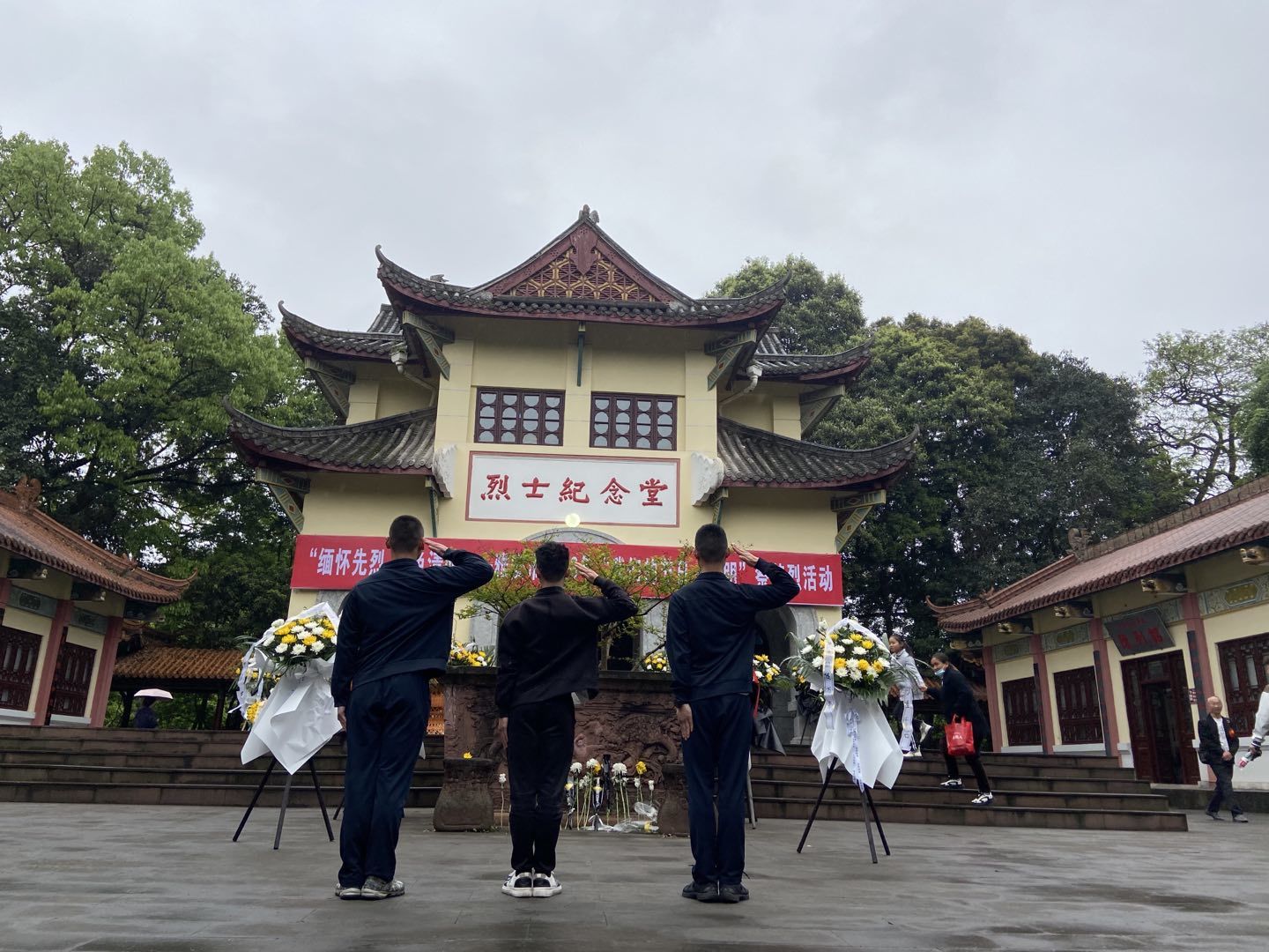 苍松长耸翠,古柏永垂青,绵绵细雨道不尽同学们的无限哀思。祭扫活动分为五项。第一项:全体人员共同起唱《中华人民共和国国歌》;第二项:为革命烈士献词;第三项:为革命烈士献花篮;第四项:全体三鞠躬,静默肃立;第五项:对革命烈士进行瞻仰。随后,工作人员带同学们参观烈士陵园,并对陵园内建筑和纪念馆内呈列的文物进行讲解。参观完毕后同学们到园前合影留恋。