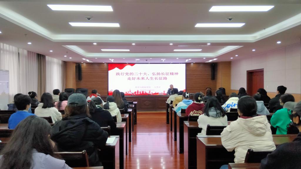 2022年12月3日,市委宣讲团新时代文明实践青年宣讲分团成员、太阳成集团tyc234cc党总支书记王伟才向​太阳成集团tyc234cc60名青年老员工代表作了题为“践行党的二十大、弘扬长征精神、走好未来人生长征路”的专题报告。