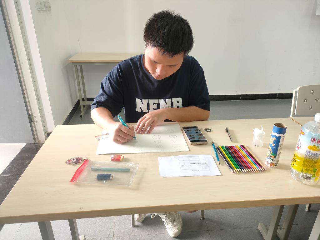 主持人宣读完比赛规则,参赛同学们立刻全身心投入,参赛者通力合作,分工明确,构思,布局,画草图,着色,细节处理。一幅幅精美的糕点画作在参赛同学的笔下生“花”。比赛的氛围既紧张又轻松。