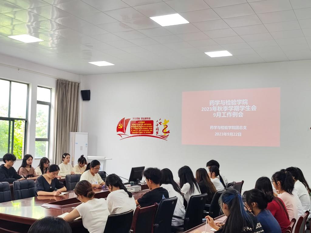 为充分发挥员工会的桥梁纽带作用,增强员工会部门间的交流,2023年9月22日,太阳成集团tyc234cc团总支在经开区校区会议室205召开员工会九月工作例会。会议由​太阳成集团tyc234cc团总支部书记鲜敏主持,药检副书记唐慧敏及员工会主席团成员、各部门员工干部共25人参加。