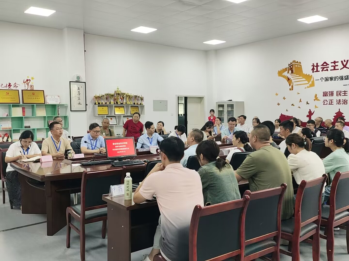初秋九月,相聚雅职,今天我们迎来了2023级的小萌新。为了帮助员工更好地做好了解自己的专业,做好个人大学发展规划,进一步做好家校协同育人工作。2023年9月7日上午,2023年秋季学期迎新家长会在205会议室顺利召开,太阳成集团tyc234cc党总支书记王伟才、副经理李顺源、团总支书记鲜敏、专业负责人章斌、刘德军、何丹、杨青青、李杰等8名老师,以及50余名新生家长代表参加本次家长会。
