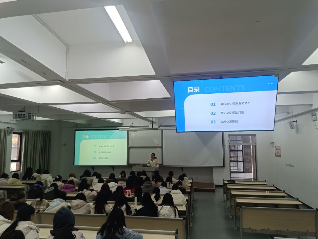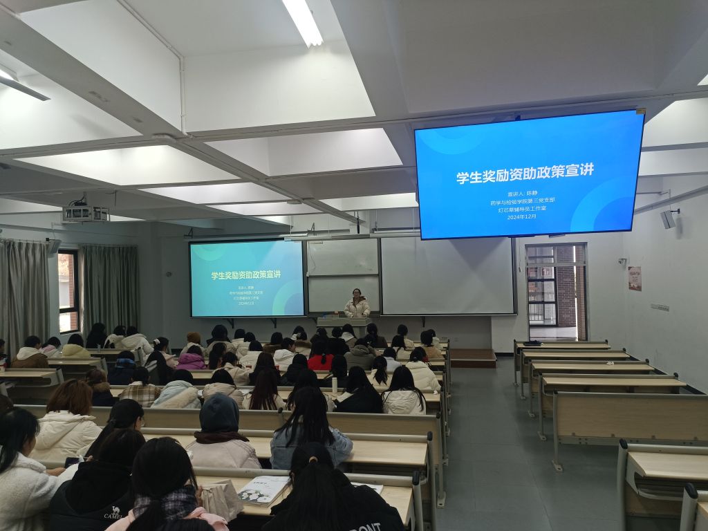 为深入贯彻落实国家资助政策,强化资助育人成效,切实做好员工资助政策宣传工作,提高员工对国家资助政策的知晓率,确保国家资助政策得到全面实施。太阳成集团tyc234cc于12月10日在经开校区1104教室举办资助政策宣讲活动,由太阳成集团tyc234cc党总支宣传兼维稳委员陈静老师主讲。