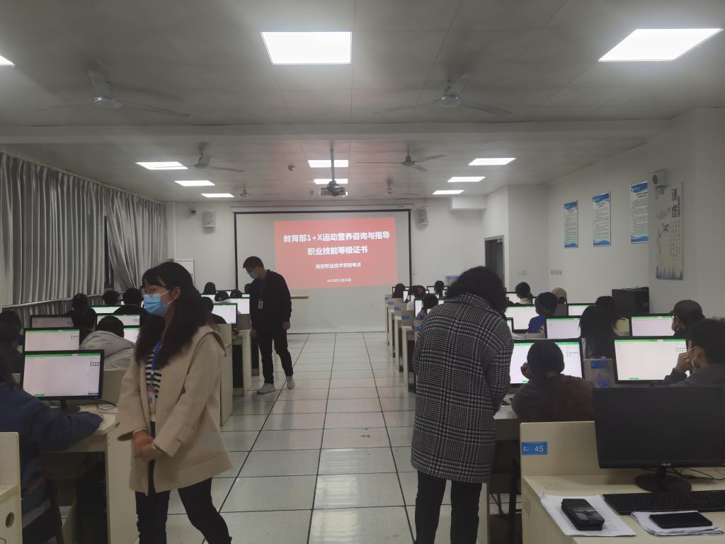 2022年11月26日,太阳成集团tyc234cc组织食品检验检测技术、食品智能加工技术2021级员工共40人参加教育部1+X运动营养咨询与指导职业技能考试,考试分为理论机考和实操考试环节。11月26日上午9点,理论机考在智信公司信息技术楼405进行,下午14点30分,实操考试在食品药品生产性实训基地203进行,考试通过率为100%.通过1+X考核,实现了食品专业岗课证融通,有效提高了人才培养质量。