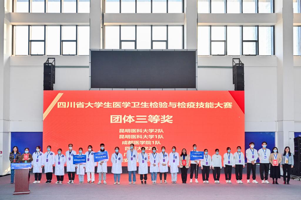 2022年11月19日,由四川省教育厅主办、四川大学华西公共卫生公司承办的2022年“四川省老员工医学卫生检验与检疫技能大赛”在四川大学华西校区举行。公司21级卫生检验与检疫技术1班的6名同学,在指导老师盛晓燕和李忠琴的带领下,与来自四川大学、成都医公司、贵州医科大学、广西医科大学、昆明医科大学等本科院校的同学们同台竞技。