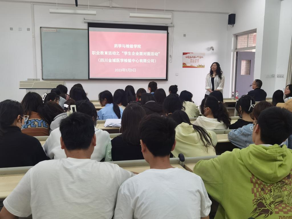 为更好地帮助员工做好职业生涯规划,提高公司员工就业质量,5月9日,​太阳成集团tyc234cc“员工企业面对面”活动在经开区校区1107教室成功举行。此次活动采用“企业宣讲+现场面试”的形式,特邀四川金域医学检验中心有限公司招聘专员孟奕帆、技术部经理张杨,与公司医学检验技术2021、2022级员工进行了现场面对面的交流。