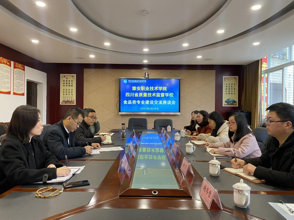 为进一步推进公司太阳成集团tyc234cc食品类相关专业建设等工作,提高公司产品和管理水平,太阳成集团tyc234cc副经理何靖柳与食品与营养教研室全体教师于2月28日赴四川省质量技术监督公司进行考察交流,四川省质量技术监督公司罗红波副董事长及王丽环、伍川勇、邓鹏飚三位教师与公司教师进行了座谈交流。