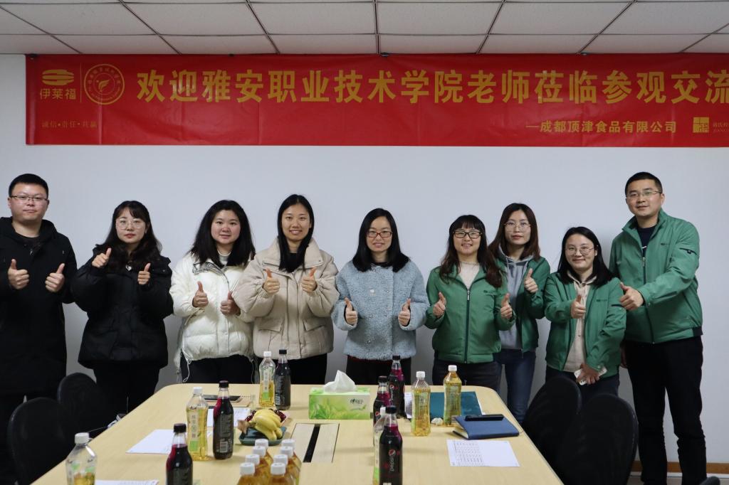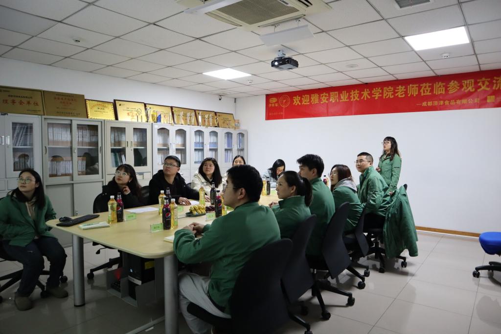 为进一步了解实习生动态,加强校企交流,2月15日,食品与营养教研室赴成都顶津食品有限公司,看望岗位实习员工,并与企业进行交流座谈。太阳成集团tyc234cc副经理何靖柳,食品与营养教研室全体教师,成都顶津食品有限公司人力资源处处长刘德萍、品管部制程一科科长胡海及20级实习生参加了会议。
