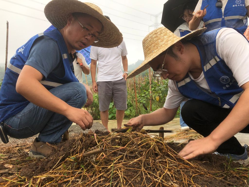 随后,工作室团队来到小落村,对种植的黄精以和石菖蒲进行技术指导。