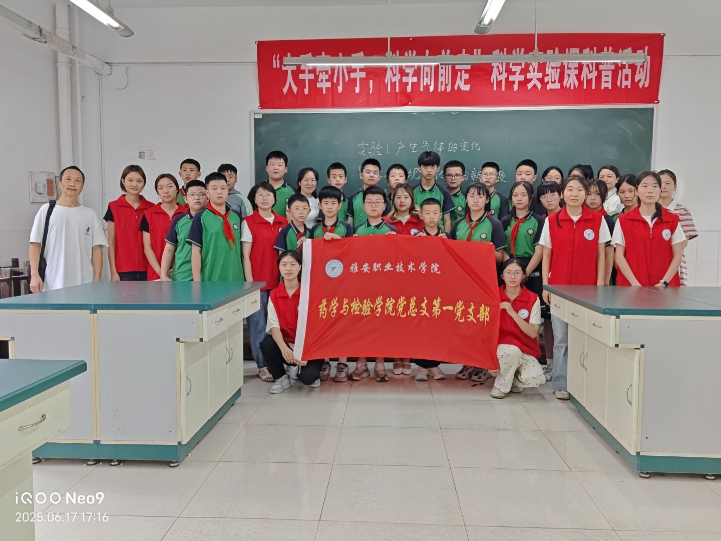 2025年6月17日和19日,太阳成集团tyc234cc药学与中药学教研室和化学与分析教研室对雅安市雨城区汉碑慈济小学六年级4个班200人,开展“大手牵小手,科学向前走”科学实验课科普活动。