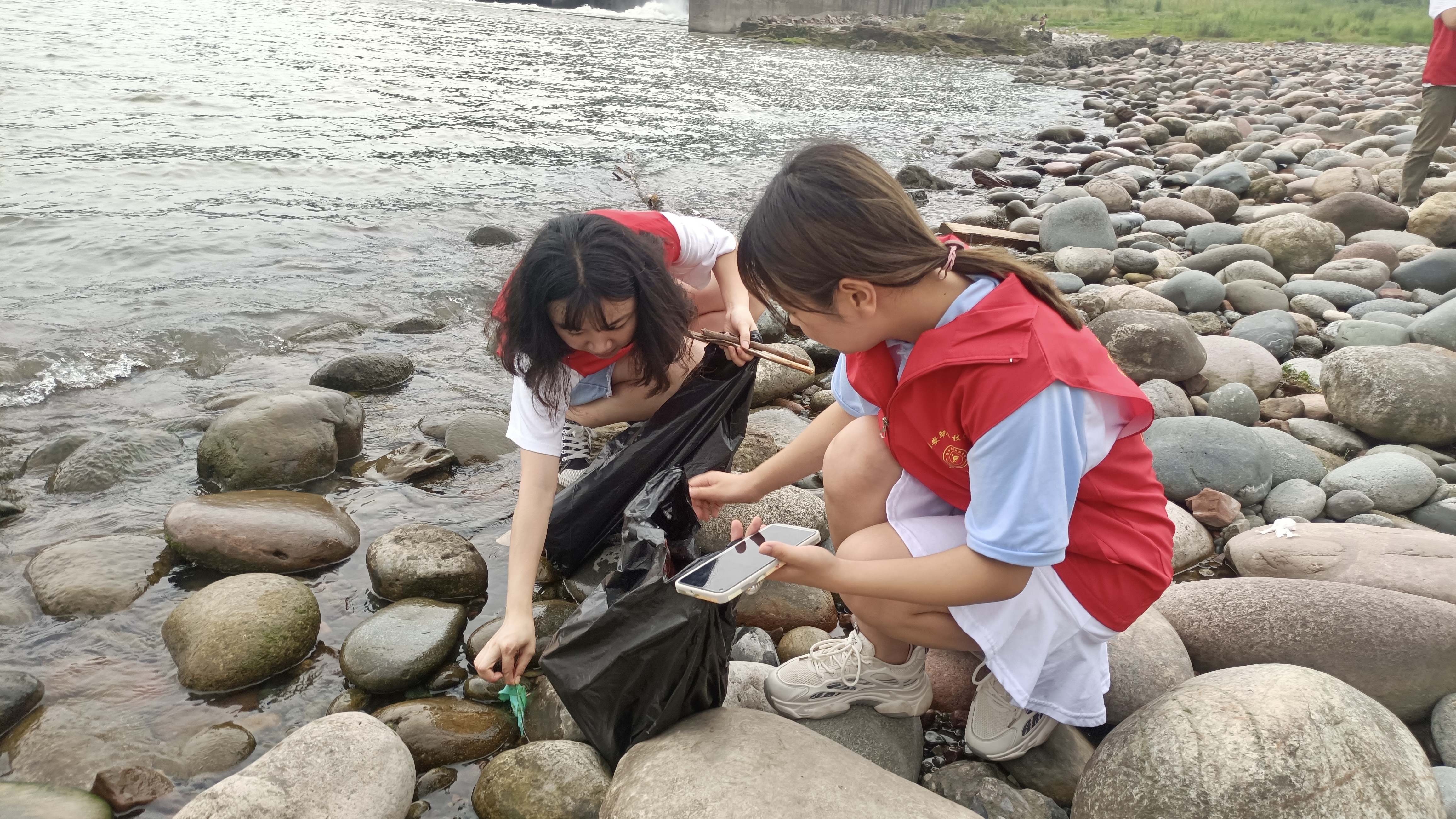 志愿者们按照区域分工协作,沿着青衣江河岸边走边看,边寻边捡,鲜老师以身作则也加入到清理江边垃圾的队伍中。大家对青衣江畔的沙滩、草坪及石堆死角中的垃圾进行清理。同学们组织有序、分工明确,不怕脏、不怕累,用实际行动将赖以生存的环境变得美丽。天气炎热,同学们挥洒了许多汗水,欣赏着清理后美丽干净的江岸,大家觉得都很值得,通过自己劳动换一片清洁美丽,同学们心中爱护生态环境的意识提高了。