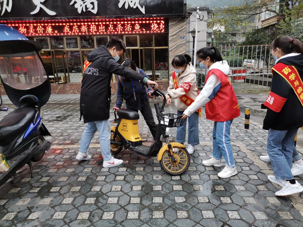 30名志愿者被分为两支队伍:一支20名由邵鹏带队前往雨城区河北街道,对街道的垃圾、杂物等进行了清理,并对河北街道及附近的单车进行了有序摆放;另一支由王靖雯、夏钰银带队前往汉碑社区,帮助社区工作人员打扫卫生、整理文件资料,帮助社区居民清理阳台杂草,并挨家挨户进行文明劝导,提醒居民阳台勿堆放杂物,避免高空掉物,危害公共安全,同时,号召居民爱护环境,共同创建良好的社区环境。社区服务活动完成之后,青年志愿者们在路口“上岗”,协助交警维护交通秩序。