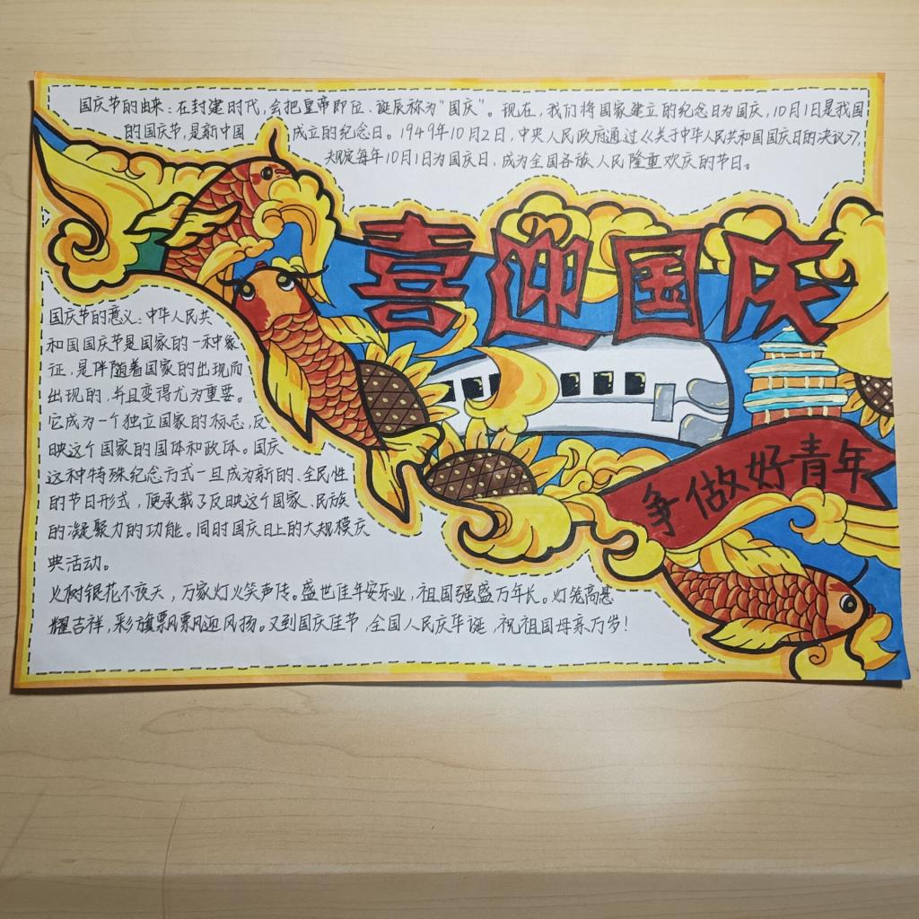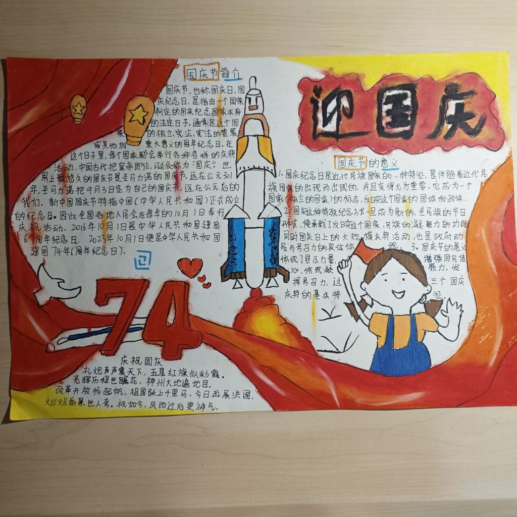 通过本次的国庆手抄报活动,不仅让同学们用自己的方式表达了对祖国的热爱和祝福,还引导他们树立正确的价值观和民族精神,让他们在创作中获得成就感和自信心。希望通过这样的活动,能够进一步培养青少年的爱国主义情感和文化自信,使他们成为有社会责任感的中国公民。