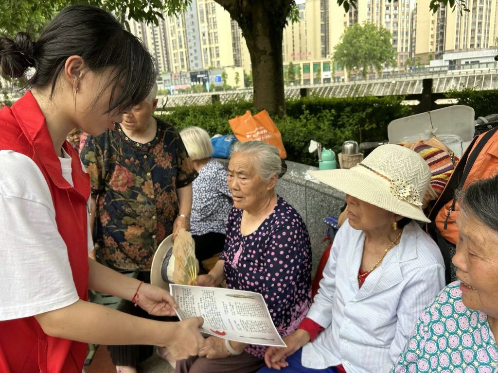 随后,宣讲团成员通过走访,对居民进行了文物保护和文化传承的志愿宣讲活动。宣讲过程中,志愿者们精神抖擞,为大家讲解青铜罍、月牙形“心”纹印章、鸟鱼纹青铜剑、虎头纹“成都”铭文青铜矛等历史文物的文化价值和意义,激发了居民对文化遗产的关注和热爱。
