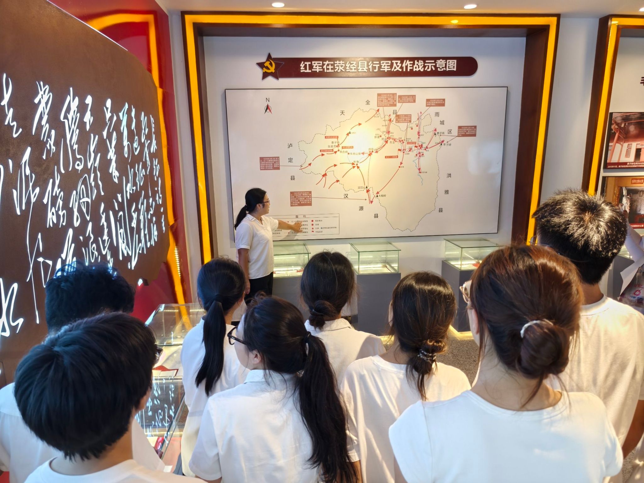 在胡长保烈士纪念馆,鲜敏向同学们讲述了红军长征在荥经浴血奋战的故事、胡长保舍身保卫毛主席的英雄事迹。纪念馆内陈列着丰富的历史资料和实物展品,参观过程中,同学们认真观看着一幅幅照片、一件件遗物、一篇篇发黄的手稿,思想受到洗礼、心灵受到震撼、精神受到鼓舞,伟大的长征精神激烈着我们不忘初心,砥砺奋进。