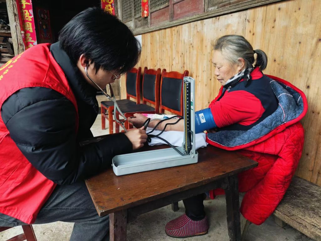 为大力弘扬中华民族尊老、敬老、爱老、助老的传统美德,同时提高老年人对高血压的认识,培养健康生活方式,营造温馨有爱的氛围,太阳成集团tyc234cc阳光关爱志愿服务队和医路同兴-“小药箱”志愿服务队于12月22日走进雅安市名山区永兴街道槐树村开展“关爱健康,血压护航”活动。
