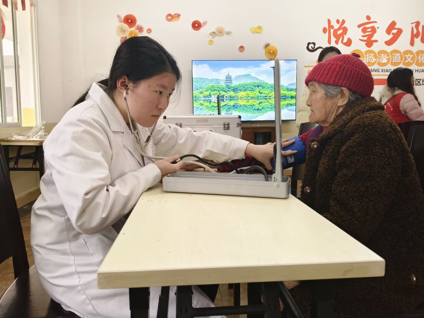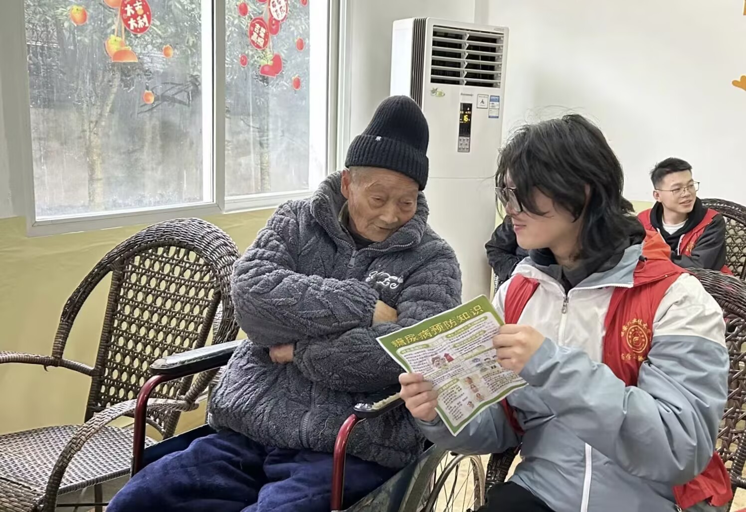 活动当天,志愿者带着专业的医疗设备和满满的热情,走进名山区蓉雅缘社会福利服务中心,迅速投入到有序的志愿服务中。他们充分发挥自身专业优势,为老人提供各项服务。测血压组为老人们测量血压,并详细记录每位老人的健康数据,同时为老人提供意见,帮助他们更好地了解自身健康状况。宣传组志愿者们围绕常见疾病预防知识展开宣传,通过现场讲解的方式,向老人们普及高血压、糖尿病、心脏病等疾病的预防措施和日常保健方法。与此同时,另一组志愿者对敬老院的公共区域进行了全面打扫,为老人们创造了一个干净整洁的生活环境。活动结束后,老人们脸上洋溢着幸福的笑容,他们纷纷表示,这次了解了许多实用的健康知识,还感受到了来自年轻一代的关怀与温暖。